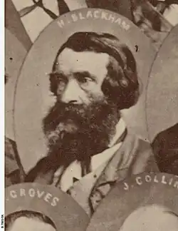 Blackham was born in Newry, Ireland on 14 January 1817. In 1840, along with his parents Richard and Sarah and his five younger siblings, he emigrated to Australia. Travelling on board the Birman for 108 days they arrived in Port Adelaide.[1] They settled in the One Tree Hill area of South Australia and purchased land for farming which they called Trevilla (this land is now called the Blackham Environmental and Conservation Centre, owned by Trinity College, Gawler).[2] In 1851 Blackham married Elizabeth Kathleen Lynch, they had five children (Hannah, Richard, Henry, James and Desmond) and were both involved in building a local church and schoolhouse. Blackham was the uncle of Australian cricketer Jack Blackham.