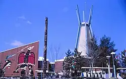 A noted work by Henry and Richard Hunt is a 32-foot (9.8 m) memorial pole which was erected in 1970 in memory of Mungo Martin at Alert Bay.[4][5] This pole is reputedly the world's tallest totem pole, standing at 9.75 metres (32.0 ft); the previous claim to the title was a pole carved by Henry Hunt, Mungo and David Martin standing at Beacon Hill Park in Victoria, depicting the legend of Geeksen, the first man in Kwakwaka'wakw mythology.[2] Another of Hunt's poles stands at the Swartz Bay ferry terminal; this pole depicts the Kwakwaka'wakw mythological figures of Grizzly Bear and the Whale, and was awarded first prize in the Route of the Totems contest.[2]
