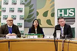 Among the HJS' early members and supporters were Brendan Simms and Conservative MPs Michael Gove and Ed Vaizey. Simms had written a prominent critique of the British policy in Bosnia.[35] Michael Gove had written pro-Israel documents, arguing Israel was legitimate to seize Arab territory. Gove also did not believe that the UK needed UN approval to invade Iraq, given the UK is a democracy while the UNSC gives the veto to non-democratic countries.[36]