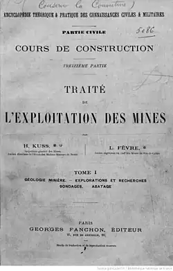 - Henri Kuss (1908), Traité de l'exploitation des mines, Paris: G. Fanchon , DL