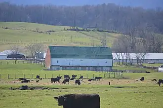 Henry Mish Barn, also known as Mish Barn and Heritage Hill Barn, is a historic Pennsylvania bank barn located near Middlebrook, Augusta County, Virginia. It was built about 1849, and measures 50 feet by 100 feet. The ends of the barn feature decorative brick lattice vents in lozenge patterns, a feature prevalent in Pennsylvania barns. It is one of the few pre-American Civil War examples to have survived the Valley barn-burning campaigns by Union forces.[3] Associated with the brick barn are the contributing Mish House and two related outbuildings. The barn was built for Henry Mish, a native of York County, Pennsylvania who settled in southwestern Augusta County in 1839.[4]
