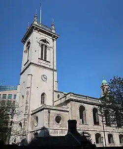 In July 1708 he was awarded a Doctorate of Divinity, possibly due to his abilities as a preacher as well as for his teaching.[12] In March 1709 a local brewer named John Lade suggested to Sacheverell that he put himself forward for the vacant office of chaplain at St Saviour's, Southwark.[17] He campaigned for the post with such vigour that a fellow clergyman wrote "None is so much talked of as he all over the Town. I suppose we shall have him very speedily the subject of de Foe's Review, in which he has formerly had the honour of being substantially abused".[18] His most notable backers were Lord Weymouth and Sir William Trumbull.[18] News of his candidacy alarmed the Archbishop of Canterbury, Thomas Tenison, and aroused opposition from the Dissenters, as Trumbull's nephew wrote: "[They] give out that if they can keep him out this time, they shall for ever keep him from coming into the City".[19] However Sacheverell was appointed by 28 votes to 19 on 24 May. Tenison was "much troubled" by this.[19]
