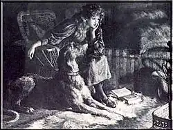Many of Dicksee's works, especially those painted during the war, depict the dogs accompanying melancholy young ladies. His most frequent model was the actress Gladys Cooper.