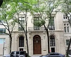 The Herbert N. Straus House is a large town house at 9 East 71st Street, just east of Fifth Avenue, on the Upper East Side of Manhattan in New York City. The exterior was designed by Horace Trumbauer,[1] and completed in 1932. A roof extension was added in 1977.[2] The size of the house was believed to be 21,000 square feet (2,000 m2) in the late 1980s, and by 2003 had been enlarged to 51,000 square feet (4,700 m2), spread over nine floors.[3][4] A 15-foot high (4.6 m) oak door and large arched windows are distinctive features of the limestone exterior.[4] A heated sidewalk is located in front of the house.[5]