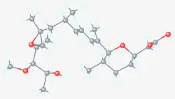 Herboxidiene is a polyketide molecule soluble in polar solvents such as water, ethanol, n-butanol and acetone but insoluble in non-polar solvents such as hexane. It was first isolated from the fermentation broth of Streptomyces chromofuscus by Monsanto in 1992.[2] Herboxidiene shows in vitro antitumor activity by targeting the SF3B protein in the splicesosome.[3] Many antitumor derivatives have also been developed from herboxidiene through chemical modification.[4]