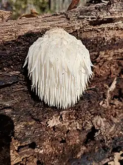 Hericium erinaceus, commonly known as lion's mane, yamabushitake, bearded tooth fungus, or bearded hedgehog,[1][2] is a species of tooth fungus. It tends to grow in a single clump with dangling spines longer than 1 centimetre (1⁄2 inch). It can be mistaken for other Hericium species that grow in the same areas.