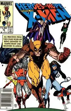 Heroes for Hope: Starring the X-Men is a 1985 Marvel comic book designed to raise awareness about hunger in Africa. Proceeds from the comic went to the American Friends Service Committee, to assist in their work on behalf of African famine relief and recovery. Published in the form of a "comic jam" or exquisite corpse, the book featured an all-star lineup of comics creators as well as authors from outside the comic book industry, such as Stephen King, George R. R. Martin, and Edward Bryant. It also saw a rare Alan Moore Marvel Comics credit outside his early Marvel UK work.