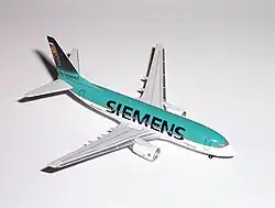 Herpa Wings is a brand that identifies the die-cast model aircraft line of German company Herpa. The collection includes 250 airlines under 17 different aircraft manufacturers in 1:200 scale. The mainstay of Herpa Wings is in the 1:500 scale, while model airliners are also produced in the 1:400, 1:200, 1:1000, and 1:160 scales. Herpa Wings model airliners may also be used in conjunction with Herpa's SCENIX series, which includes model diorama airports and airport accessories.