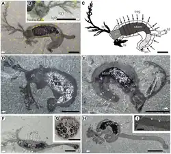 Herpetogaster is an extinct cambroernid genus of animal from the Early Cambrian Chengjiang biota of China, Blang Formation of China, Pioche Formation of Nevada and Middle Cambrian Burgess Shale of Canada containing the species Herpetogaster collinsi and Herpetogaster haiyanensis.[1][2][3][4]