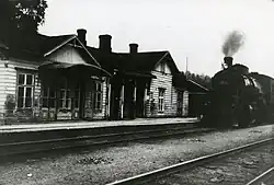 1. ^ The other stations constructed as such on the line, listed in order from Riihimäki to St. Petersburg–Finlyandsky, include Hikiä, Lappila, Vesijärvi, Kausala, Kymi (Koria), Taavetti, Säiniö (Verkhne-Cherkasovo), Galitzina (Leypyasuo) and Terijoki (Zelenogorsk).[6]