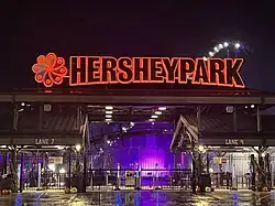 Hersheypark (known as Hershey Park until 1970) is a family theme park in Hershey, Pennsylvania, United States, about fifteen miles (25 km) east of Harrisburg, and 95 miles (155 km) west of Philadelphia. The park was founded in 1906,[3][4][6] by Milton S. Hershey[7] as a leisure park for the employees of the Hershey Chocolate Company. It is wholly and privately owned by Hershey Entertainment and Resorts Company. Hersheypark has won several awards, including the Applause Award.[8]