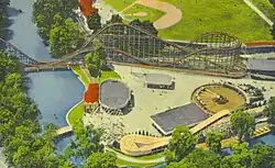 The first ride was added to the park in 1908 – a Herschell-Spillman carousel often referred to as the "Merry-Go-Round" or "Carrousel".[17] This was followed in 1910 with the addition of the Miniature Railroad,[18] which remained in operation until the end of the 1971 season.[19] The park has operated a roller coaster ride continuously since 1923, a variety of boat rides on Spring Creek, and six dark rides, three of which were fun houses. The park added its first two kiddie rides in 1926, a kiddie Ferris wheel and Airplane Swing.[20][21] Hersheypark has built over 160 rides over its nearly 120 year history. The park currently has 76 rides and water attractions.