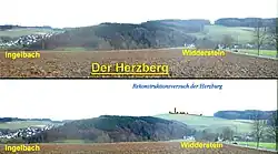 The Herzburg (also sometimes the Harzburg) was a castle near the county town of Altenkirchen (Westerwald) that stood on the long hill spur between Gieleroth, Widderstein, Ingelbach and Borod. Archaeological monuments and place names give clues to the earlier settlement. The River Wied flows around this hilltop which is strategically located between the old "Cologne-Frankfurt Road" (now the B 8) and the old Cologne-Leipzig road (now the B 414). The two routes are combined from Cologne to Altenkirchen and then branch out. The Cologne-Leipzig road is also called the Cologne High Military and Escort Road (Cölnische Hohe Heer- und Geleitstraße) from Cologne to Greifenstein/Herborn on the Lahn.