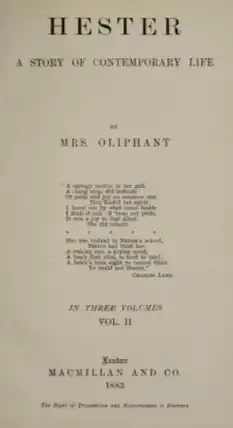 - ^ Oliphant, Margaret (1883). Davis, Philip (ed.). Hester. Oxford University Press (published 2009). ISBN 978-0-19-955549-9.