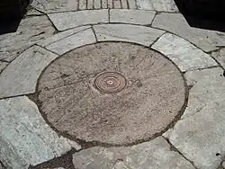 Lutyens was known for paying close attention to the materials used in his architectural designs. He liked to use regionally occurring types of stone for this purpose, as in the formal garden of Hestercombe Gardens. Here, the so-called "Ham-Hill stone", a warm sand-colored type of sandstone, was used to a great extent. This sandstone was used primarily to build niches, balustrades, stair railings, and the Orangery as a large structure. Locally occurring slate (native Lias, called Morte) was used on a larger scale, mainly for walls, stone slabs, step installations, or water basins.[8][9] Lutyens adopted the technique of building dry-stone walls using shale layers, a method commonly found in the southwest of England where the garden is located. Walls of this type could be planted over large areas without great difficulty, a circumstance that Jekyll took advantage of to further develop the connection between plants and architecture that is encountered time and again. The large pergola was also constructed of slate. The alternating square and round columns were layered from uniformly thin natural stones. As a further design element, the building material used was processed and used in different ways, such as quarry stone, finely cut, or polished.[9]