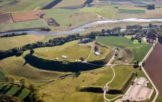 The huge fortifications recognised in the 19th century, but then misinterpreted as medieval, are also part of the Celtic complex. They have been partially obliterated by erosion and ploughing. A triple system of several hundred metres of banks and ditches enclosed and subdivided the lower terrain just west of the Heuneburg proper. Since they partially overlay the Aussensiedlung houses, the walls must have been erected in a later phase. They survive to a height of over 6 m; the ditches were originally 7 m (23 ft) deep.[19]