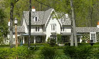 This historic house was built in 1854, and is a two-story, three-bay, cross-shaped, stuccoed, stone dwelling that was designed in the Rural Gothic-Cottage style. It has a steeply pitched four-gable roof and features a central projecting bay with Tudor-arched openings. It also has a 1+1⁄2-story rear kitchen ell, and was renovated in 1904.[2]
