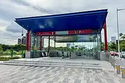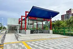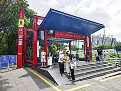 The station section of Line 12 was partially enclosed in August 2019.[13] On 28 September 2020, Exit A was temporarily closed to meet the construction needs of Line 12, reopened at the end of that year, and then closed again on May 16, 2021. Exit B was closed on 20 December 2020, and the two entrances/exits needed to be removed because they were located within the construction of the Line 12 station structure. It was rebuilt on both sides of the Mingzhi Street intersection and reopened on 1 January 2022 after completion. On 28 February 2025, the Line 12 station completed the "three powers" transfer.[14]