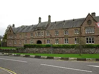 The oldest part of the current structure is the main frontage on Ardross Road which was commissioned by the Northern Counties Collegiate School, an educational establishment which was founded with strong connections with the Army and India in 1873. Originally known as Inverness College, it also went by Inverness Collegiate School and The Boy's College before closing in about 1914.[2][3] The building was designed by Alexander Ross in the Gothic Revival style, built in coursed stone and was completed in 1876.[1][4][5]