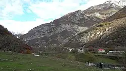 The Highlands of Gjakova are bordered by Kosovo's Plain of Dukagjin to the east, the Fierza Lake to the south, the ethnographic Dukagjin Highlands region to the west and the mountains of Plav and Guci to the north. Much of the region corresponds to the Tropoja Municipality of Albania, with the main municipal centre in Bajram Curri. This section consists of 54 villages and around 28,154 inhabitants.[2][3] The Gjakova Highlands of Kosovo consist of Koshare, Botushë, Morina and the other mountainous areas and settlements in the west of the District of Gjakova. In Montenegro, areas to the east of Vuthaj are also considered to be part of the ethnographic Gjakova Highlands region.[1] The region consists of the valued and protected Valbonë Valley National Park,[4] Gashi Nature Reserve[5] and the Nikaj-Mërtur Regional Nature Park,[6] as well as certain sections of the Bjeshkët e Nemuna National Park across the border.