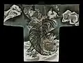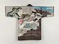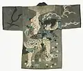 Hikeshi banten is a reversible hanten coat worn by hikeshi, Japanese firefighters of the Edo period, often decorated with symbolic images. Firefighter brigades consisted either of samurai (buke hikeshi) or commoners (machi hikeshi). The coats were made of multiple layers of tightly stitched cotton fabric, quilted using the sashiko technique of running stitches. On one side, the coats had only the firefighting brigade name. The other side featured elaborate designs "resist-dyed using the tsutsugaki method". The inner designs often depicted warrior heroes, or mythical creatures associated with bravery or water, often inspired by ukiyo-e prints.[1][2][3]