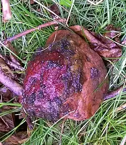 - ^ Pueschel, Curt M. (1982). "Ultrastructural observations of tetrasporangia and conceptacles in Hildenbrandia (rhodophyta: Hildenbrandiales)". British Phycological Journal. 17 (3): 333–341. doi:10.1080/00071618200650331. ISSN 0007-1617.