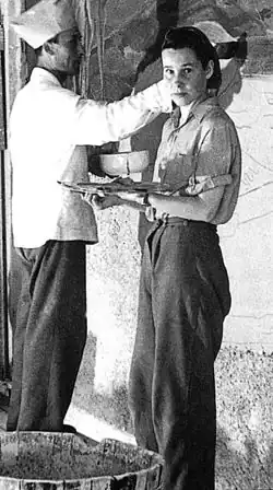 Toivola married the painter Otso Karpakka (1914-2005); both were involved in Ryhmä 9, a Turku-based artists' collective that functioned from 1951 to 1959. The couple were unusual in having worked alongside each other as artists for some 60 years, cooperating in the creation of several large frescoes and stained-glass pieces. Nevertheless, they each had separate artistic careers. The Wäinö Aaltonen Museum of Art mounted a large exhibition featuring 600 Toivola and Karpakka works (2006–2007), and published a bilingual Finnish-Swedish book on the artist couple's lives and work.[1]