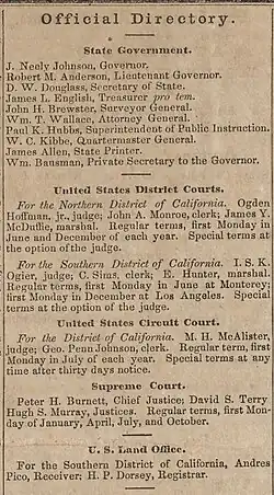 ![]() Andrés Pico and Hilliard P. Dorsey ran the U.S. land office in southern California in 1857 | |