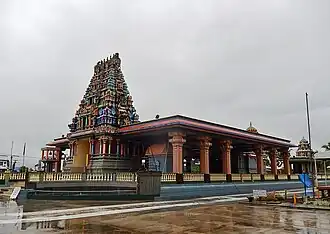 Hindus began building temples after their arrival in Fiji. These served as venues for marriages, annual religious festivals, family prayers after the death of loved ones, and other social events. The Hindu temples were constructed both in northern and southern Indian styles. The Shiu Hindu temple at Nadawar in Nadi, for example, was built in 1910; however this temple was destroyed in an arson attack and communal violence against Hindus in 2008.[31] Sri Siva Subramaniya Hindu Temple in Nadi is the largest Hindu temple in Fiji.[32]