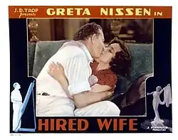 Hired Wife is a 1934 American drama film directed by George Melford and starring Greta Nissen, Weldon Heyburn and James Kirkwood. It was produced as a second feature by the independent company Pinnacle Productions.[1] It was shot at the Sun Haven Studios in Florida rather than in Hollywood. Location shooting took place at the Soreno Hotel in St. Petersburg, Florida.