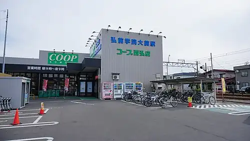 Hirosakigakuindaimae Station (弘前学院大前駅, Hirosakigakuindaimae-eki) is a railway station in the city of Hirosaki, Aomori Prefecture, Japan, operated by the private railway operator, Kōnan Railway Company. It is located in front of Hirosaki Gakuin University.