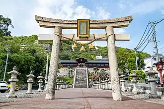 After the establishment of Nikkō Tōshō-gū Shrine by Tokugawa Iemitsu, the third shogun of the Tokugawa shogunate, he encouraged Daimyo throughout the country to build Tōshō-gū Shrines. As a result, Tōshō-gū Shrines were built all over Japan.[4] The Hiroshima Tōshō-gū was built in 1648 by Asano Mitsuakira, the second Daimyo of the Hiroshima Domain, using a large amount of money from the domain. His birth mother, Shōsei-in, was the third daughter of Tokugawa Ieyasu, and being a grandson of Ieyasu, Asano Mitsuakira was particularly devoted to the construction of the Tōshō-gū Shrine.[4] The construction of the Hiroshima Tōshō-gū began in 1646 and was completed in July 1648. The completion ceremony was held by Asano Mitsuakira, who wore the traditional formal attire of the Kuge and donated 300 koku of land to the shrine (Jisha-ryō).[4][5][6] The most obvious reason for the construction of the Hiroshima Tōshō-gū was that Tokugawa Ieyasu was Mitsuakira's grandfather. However, another reason was that Mitsuakira wanted to show his loyalty to the Tokugawa shogunate by following the example of Ikeda Mitsumasa, the lord of the neighboring Okayama Domain, who built the first Tōshō-gū as Domain in 1645. Mitsuakira also wanted to use the Tōshō-gū as a symbol of his authority to citizen of the territory.[7]