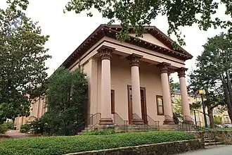 Historic Playmakers Theatre is a Greek Revival temple built in 1850, that was originally designed by New York architect Alexander Jackson Davis as Smith Hall, a combined library and ballroom.[4] After also being used as a laboratory, bath house, and law school, it became a theater in 1923. The Theatre is the perpetual home of the Carolina Playmakers, although their successor, the Playmakers Repertory Company, uses the Paul Green Theatre as their primary venue.[5][6] It was added to the National Register of Historic Places in 1971 and designated a National Historic Landmark in 1973.[4]