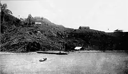 The German protectorate over the islands initially had little economic impact. A handful of copra plantations were established, but proved unproductive, and the area was seen primarily as a source of labour for existing plantations in other parts of New Guinea.[14] As of 1905, "there was apparently not a single permanent trading post manned by a non-native". The first fully commercial plantation was established at Aropa in 1908 by the Bismarck Archipelago Company. In 1910, the New Britain Corporation established a plantation at Toiemonapu. There was subsequently a rush of commercial activity, with ten enterprises established in 1911. By April 1913, land acquisitions of over 10,000 hectares (25,000 acres) had been approved by the administration, mostly by Australian companies.[16] About 220 kilometres (140 mi) of roads had been built by this time, and construction on a hospital for natives had begun. The total tax revenue for 1913 was almost 28,000 marks, about half of which was collected in Kieta. As of 1 January 1914, there were 74 Europeans in the area, one-third of whom were connected with the Marist mission and 17 of whom were British subjects (including Australians). There were also 20 "foreign natives", mostly Chinese and Malay.[17]