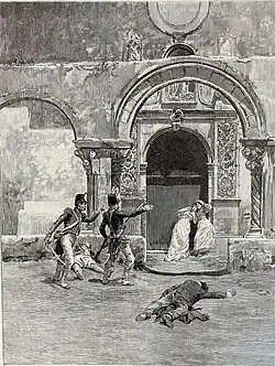 On March 9, 1735, Charles of Bourbon, then less than 20 years old, set out for Sicily with the intention of completing its conquest. The future king landed in Messina, to witness the taking of the Royal Citadel: it had surrendered on February 23, 1735.[22] From this time onward the heavy siege of Syracuse began, concentrating on it the Hispanic crown's aims: after having the population forcibly evacuated to the neighboring countryside, Germans and Spaniards opened fire on the city, and from May, for 24 days, the artillery of the Ejército de Tierra poured inside the walls; approximately 2000 bombs were dropped there.[23] At the same time that palaces, roads and various structures were being destroyed, there came from the Austrian emperor a kind of incentive for the Syracusans: he promised them, in the event of victory, the restoration of the city as the capital of Sicily as a reward for their loyalty to the Austrian Empire. If he had kept his word it would surely have been a momentous change, since Syracuse had lost its title and powers as capital since the distant Arab rule.[24]