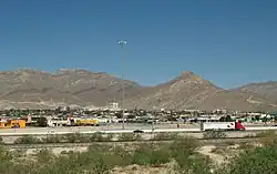 In 1887 a smelter was established by Robert Safford Towne of Kansas City Consolidated Smelting west of town for the purpose of processing lead and copper ore imported from Mexico. This smelting facility was subsequently purchased by Asarco in 1899.[15] Over time, two small settlements developed around the smelter, acquiring the Hispanicized name "La Esmelda", or "Smeltertown".[16] The Catholic parish of Santa Rosalía y San José del Río served these communities.