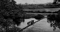 In the 17th and 18th centuries the town gained a reputation for the efficacy of its water. The Middleton family constructed and for many years maintained White Wells, an early example of a spa building containing dressing rooms and a bath fed from a spring, in the 18th century.[27] The Middletons encouraged visitors by permitting shooting on the manor and fishing in the river.[28] Prior to the spa boom, however, Ilkley was "a little, old and ragged village" of single-storey thatched cottages.[29]