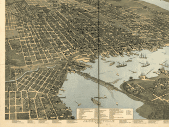 1893 bird's eye view of Jacksonville, with steamboats moving throughout the St. Johns River