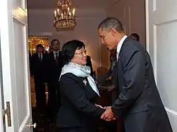 President Obama Greets Kyrgyzstan President Otunbayeva