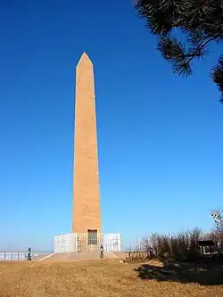 In 1900, on a high bluff overlooking the Missouri River, construction began on the 100' tall Floyd Monument, a stone obelisk honoring the burial site of Sgt. Charles Floyd. Floyd died near here while exploring the region with the Lewis and Clark expedition in 1804. The monument, which was completed in 1901, was later recognized by the U.S. Department of Interior as the First National Historic Landmark, in 1960.