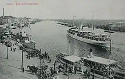 The 19th century was an age of large territorial expansion for the city, especially after 1873, when the old fortress was abolished. In 1821, the crafts corporations were abolished, and in steam transport on the Oder began, allowing further development of trade. The port was developing quickly, specialising in exports of agricultural products and coal from the Province of Silesia. Economic development and rapid population growth brought many ethnic Poles from Pomerania and Greater Poland looking for new career opportunities in the Stettin industry. More than 95% of the population consisted of Germans. In 1843, Stettin was connected by the first railway line to the Prussian capital Berlin, and in 1848 by the second railway to Posen (Poznań). New branches of industry were developed, including shipbuilding (at the AG Vulcan Stettin and Oderwerke shipyards) and ironworks using Swedish ores. Before World War I, there were 3,000 Polish inhabitants in the city,[16] including some wealthy industrialists and merchants. Among them was Kazimierz Pruszak, director of the Goleniów (then Gollnow) industrial works, who predicted eventual "return of Szczecin to Poland".[16] The population grew to 236,000 in 1910 and 382,000 in 1939.