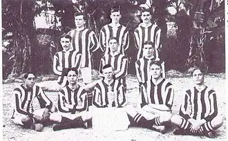 However, amateurism could not resist for long, either by the internal situation of football in Brazil or in the world. In 1923, in Italy, Juventus paid for the transfer of the athlete Viri Rosetta, but went to court asking for the annulment of the points achieved with him on the pitch. The Italian court ruled in favor of Juventus, setting the precedent for teams to take players from other teams at the cost of money, introducing professionalism in the country.[46] Similarly, several other nations have adopted professionalism since 1924, such as Spain and Austria in Europe, as well as South American neighbors Argentina and Uruguay. The spread of professionalism led FIFA to authorize the participation of athletes who received salaries in the first World Cup in 1930.[47] Internally, the situation was also getting complicated for amateurism. In 1932, a group of players published a manifesto in the newspaper Gazeta Esportiva asking for the right to exercise their profession as football players.[32] In 1933, the player Floriano Peixoto Correa, known as Marechal da Vitória, publishes the book Grandezas e Misérias do Nosso Futebol, where he critically addresses amateurism.[48] According to Correa:
