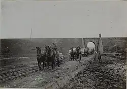 As munitions production increased, transport became the major bottleneck.[112] Military logistical systems continued to rely on nineteenth-century technology. The British shipped 5,337,841 tonnes (5,253,538 long tons) of ammunition to France and 5,525,875 tonnes (5,438,602 long tons) of hay and oats to feed the animals.[113] When the war began, the rail and horse-drawn supply were stretched to their limits. Where the stalemate of trench warfare took hold, narrow gauge trench railways were built to extend the rail network to the front lines. The great size of the German Army proved too much for its railways to support except while immobile.[114] From the beginning of the Battle of the Somme on 24 June to 23 July 1916, 150,000 tonnes (148,000 long tons) of ammunition had been fired but only 103,404 tonnes (101,771 long tons) were landed, the difference being made up by depleting stockpiles. The capacity of the six channel ports that handled 96 per cent of the British Expeditionary Force’s requirements was increased and additional locomotives and rolling stock were imported. Between 1914 and 1918, the French laid between 5,000 and 6,000 kilometres of new track.[115]