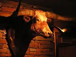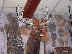 Many Americans have acquired their expertise in taxidermy via mail-order lessons and commenced their artistic career with the carcass of a sparrow or squirrel. Many prominent Americans, such as the noted painter Charles Wilson Peale and the famous military leader George Armstrong Custer, were enthusiastic taxidermists. The art has enjoyed a pervasive integration into the fabric of American social life as practitioners are found in practically every small town in America.[8] Specimens are widely employed in home and store decorations, for business advertising, for sporting trophies, and perhaps, most importantly, reifying the notion that humans can symbolically "restore" life to dead animals — thereby, in a sense, demonstrating our perceived human power over death.