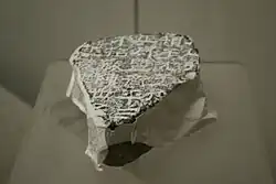After this defeat, the soldier and adviser Lou Jing—who had previously warned the emperor of the Xiongnu's strength and suffered imprisonment for it—convinced the emperor to create a peace treaty and marriage alliance with the Xiongnu, initiating the Western Han's heqin policy.[41] By this arrangement established in 198 BCE, the Han hoped to modify the Xiongnu's nomadic values with Han luxury goods given as tribute (silks, wine, foodstuffs, etc.) and to make Modu's half-Chinese successor a subordinate to grandfather Gaozu.[42] The exact amounts of annual tribute as promised by Emperor Gaozu given to the Xiongnu in the 2nd century BCE shortly after the defeat are unknown. In 89 BCE, however, Hulugu Chanyu (狐鹿姑; r. 95–85 BCE) requested a renewal of the heqin agreement with the increased amount of annual tribute at 400,000 L (11,350 U.S. bu) of wine, 100,000 L (2,840 U.S. bu) of grain, and 10,000 bales of silk; thus previous amounts would have been less than these figures.[43]
