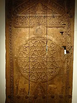 The Persian carvers closely followed Arab design. A pair of doors of the 14th century from Samarkand (Victoria and Albert Museum) is typical. Boxes, spoons and other small articles were often fretted with interlacing lines of Saracenic character, the delicacy and minuteness of the work requiring the utmost patience and skill. Many of the patterns remind one, of the sandalwood work of Madras, with the difference that the Persians were satisfied with a much lower relief. Sometimes a very beautiful result was obtained by the sparing rise of fretted lattice pattern among foliage. A fine panel of the 14th century in the Victoria and Albert Museum shows how active was Arab influence even as far as Bokhara.