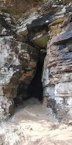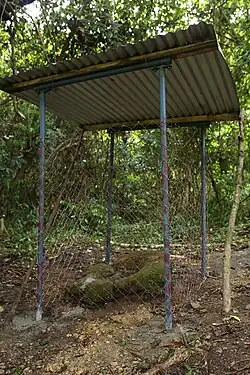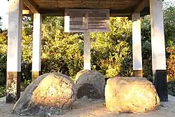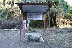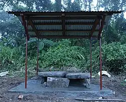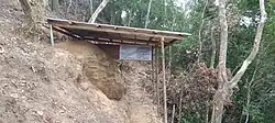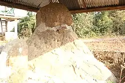 This Lungsum (stone-mortar), located in the old Zopui village, was carved from solid rock and traditionally used for husking rice during the Sikpui Festival. Typically, Hmar families couldn't afford such a mortar, leading to the belief that this particular one was crafted specifically for the festival. In ancient times, when the Hmar ancestors began agricultural practices, they commonly used wooden mortars. It's believed that the people of Zopui village created a cavity in a solid flat rock for husking rice during the Sikpui Festival in 1897.[15] This was a labor-intensive process, requiring iron tools and considerable effort to carve into solid rock. It's possible that this type of stone mortar was used for communal purposes like inchawng and Sikpui feasts. During such events, young men and women would come together to perform tasks collectively, including rice husking, as a significant quantity of rice was needed for brewing zu, a traditional alcoholic beverage. Historically, every Hmar family had its own wooden mortar, which they carried with them during their migrations.[13]