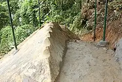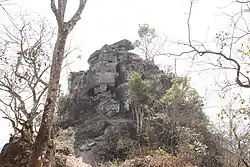 Lalruong Lungkap (translated as 'Lalruong's Rock Shot') is situated between Patpuihmun and Phulpui. According to Hmar legend, Lalruong is regarded as one of the folk heroes of the Hmar people, revered for his magical abilities.[4] Various remnants of his exploits, such as stone pillars, 'hidden' water sources, and imprints of large mithuns, are said to still exist in the Vangai ranges and Ruonglevaisuo region. Lalruong, born to Zauhrang and Zawtleipui, is said to have exhibited 'remarkable' intelligence from a young age, 'mastering' the art of magic taught by Vanhrit, an indigenous deity worshipped by the Hmar people before the advent of Christianity.[12] His reputation as a skilled magician extended far beyond his homeland, and he was known for carrying a magic tube that aided him in navigating challenging situations. Traditionally associated with the areas surrounding Ruonglevaisuo (Tipaimukh) and the Vangâi ranges, Lalruong's influence is evident in the local nomenclature, such as the Barak river being referred to as Tuiruong, meaning Lalruong's river.[13]
