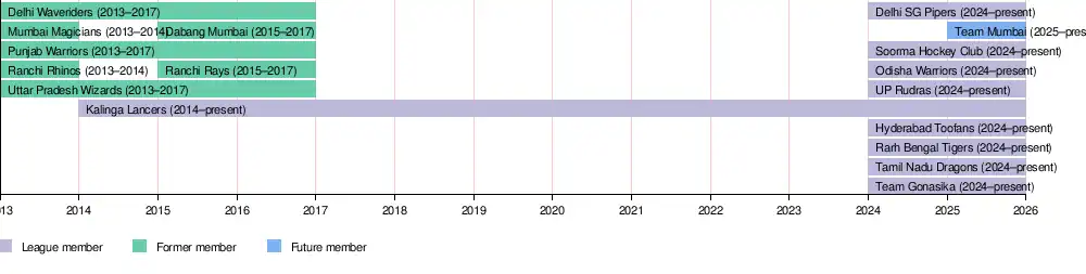 | Uttar Pradesh Wizards | Lucknow, Uttar Pradesh | Major Dhyan Chand Stadium | 2013–2017 |