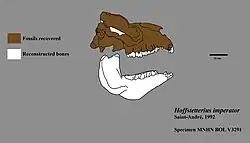 | Skeletal drawing of the skull of the adult holotype of H. imperator | |